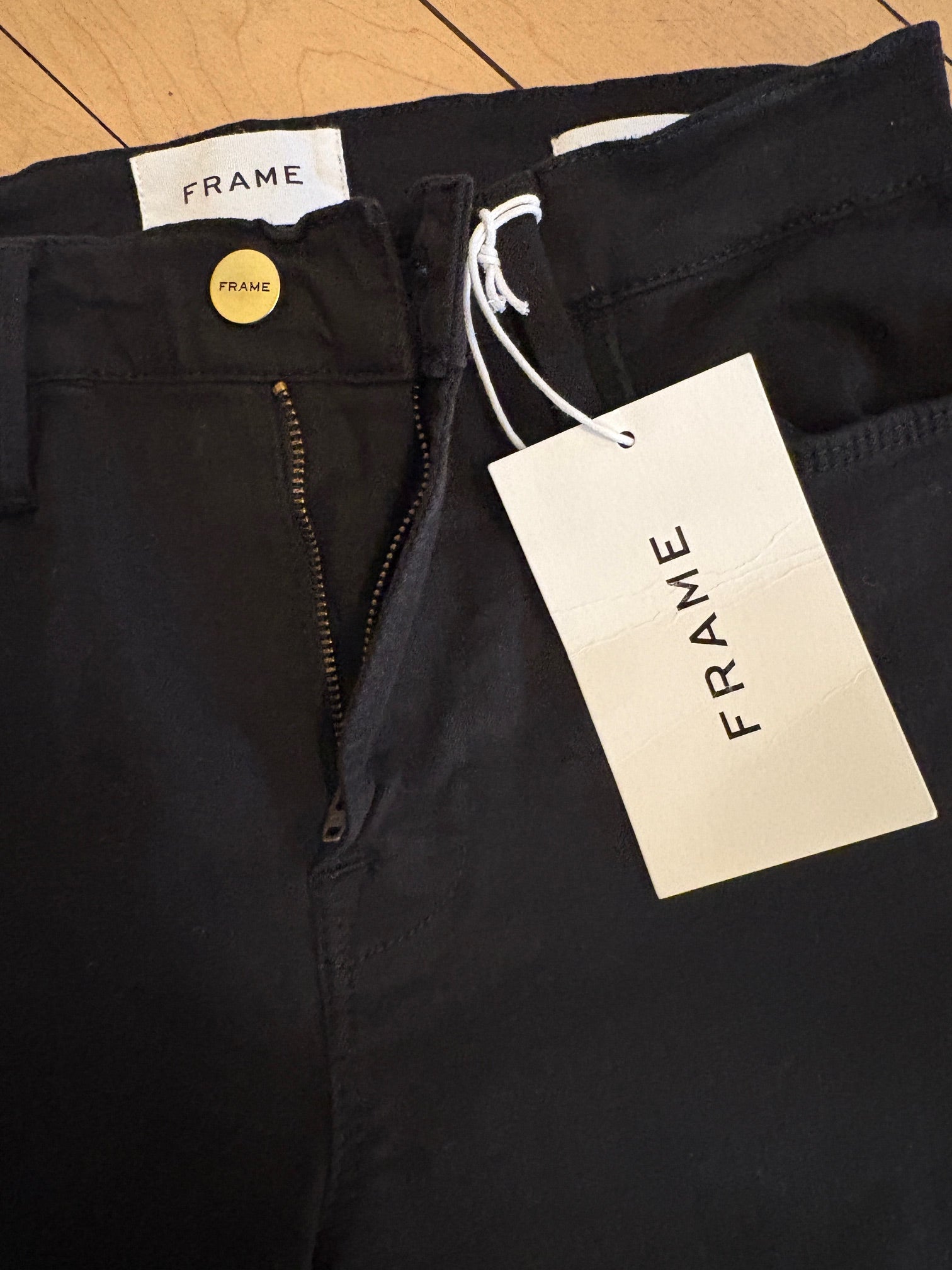 High waisted black stretch jean. Form fitting through the hips and thighs with full length flare. New with tags. Cotton Poly stretch. Made in Turkey
